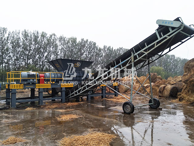 稻草粉碎機(jī)工作時(shí),由電機(jī)帶動(dòng)減速機(jī),減速機(jī)帶動(dòng)刀棍,抓機(jī)將物料投放進(jìn)料斗,物料均勻的落到轉(zhuǎn)子上,兩個(gè)轉(zhuǎn)子對(duì)向剪切實(shí)現(xiàn)物料的初步破碎。